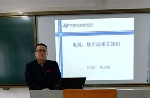 授课时,陈虎明从最基础的电动机分类及工作原理讲起,系统讲解了直流电机、交流电机以及三相异步电动机的构成及日常维护要点,重点就电动机常见的故障进行了原因分析;讲解软启动器时,重点给大家介绍了晶闸管电动机软启动器,并将变频器和软启动器的构造与性能进行了比较,加深了学员的理解。授课时陈老师还就一些问题与学员进行互动,引发学员动脑思考,提升学员解决问题的能力。